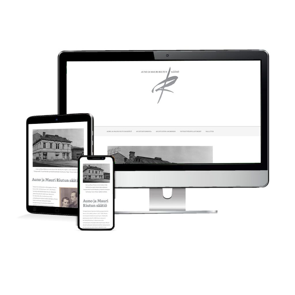 Auno ja Mauri Riutun säätiön sivut suunnittelin ja toteutin kokonaan alusta asti. Säätiöllä ei ollut aiemmin toiminnassa olevia sivuja. Valokuvat ovat säätiön arkistosta, ja tekstit ovat säätiön hallituksen käsialaa.