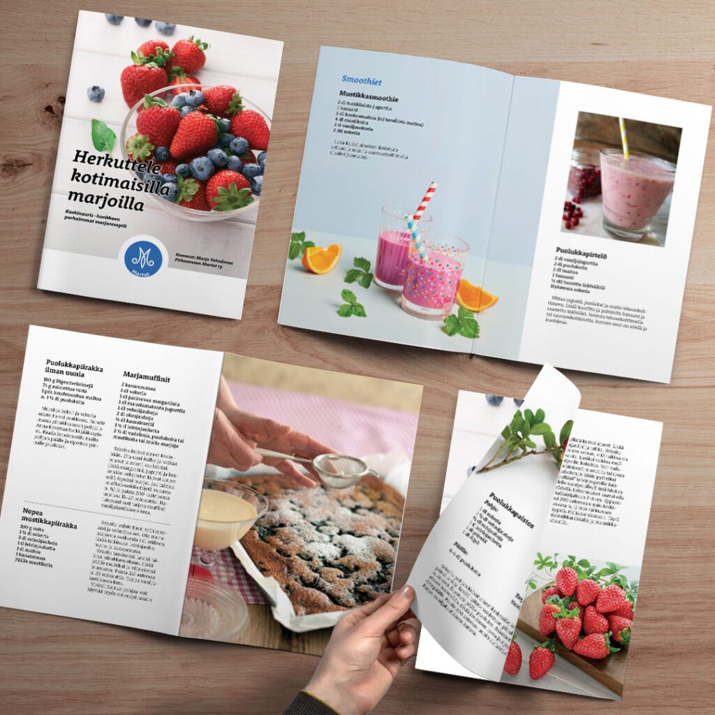 Pirkanmaan Martoille taitoin marjaesitteen, jossa on tietoa kotimaisista marjoista sekä erilaisia marja-aiheisia reseptejä.