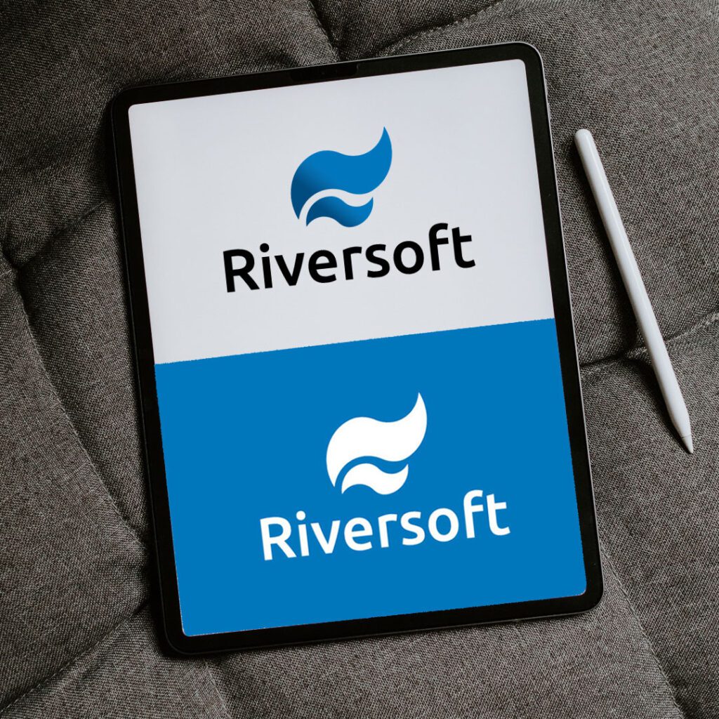 Riversoftin logosuunnittelu. Yrityksen nimessä on viite kotikaupunki Seinäjokeen, josta hain muotoa myös logoon.