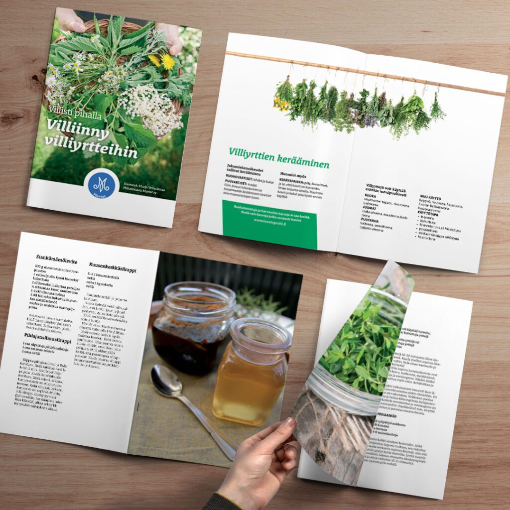 Taitoin Pirkanmaan Martoille villiyrttiesitteen, jossa on tietoa eri yrteistä sekä ohjeita, miten niitä voi hyödyntää ruuanlaitossa ja kosmetiikassa.