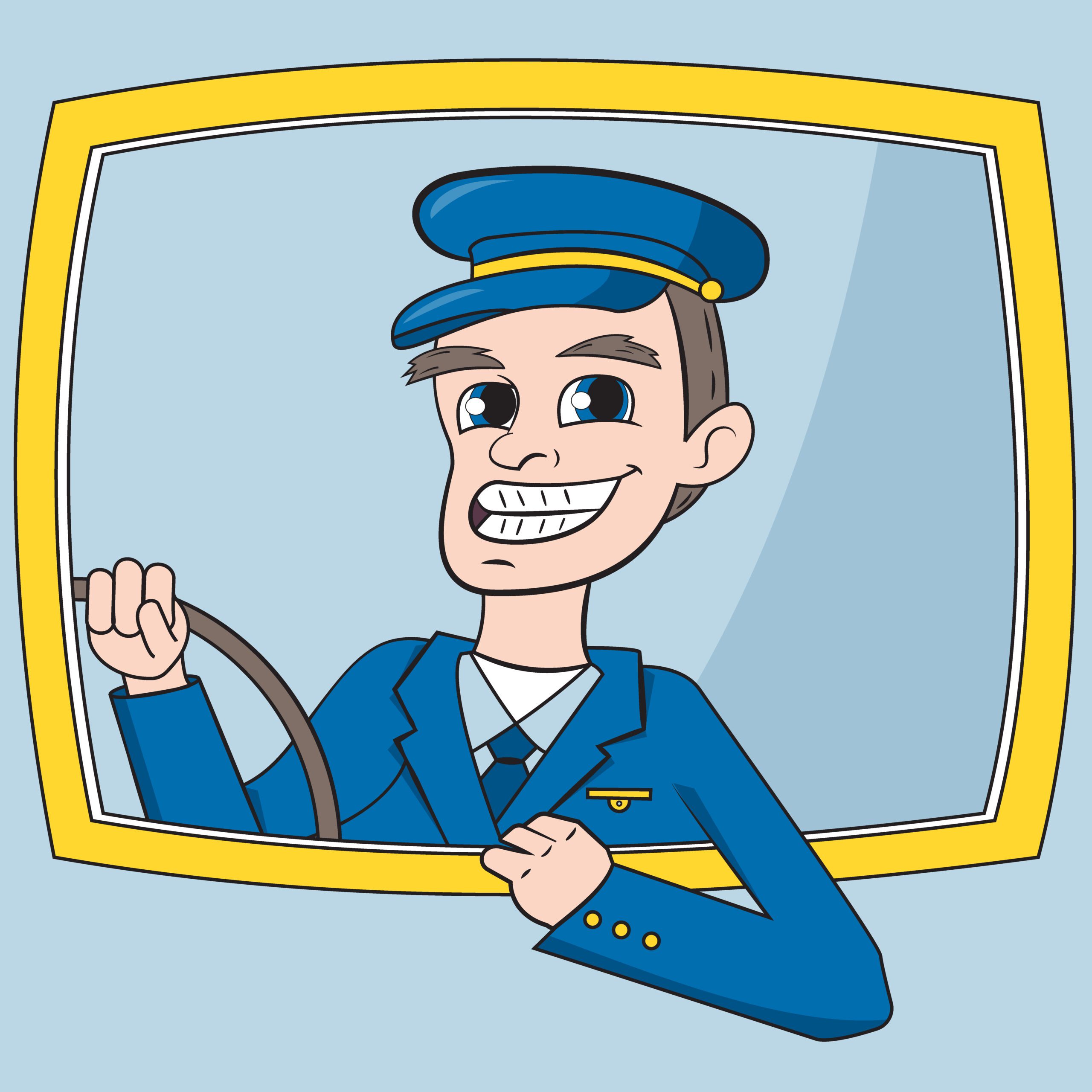 Tein Omabussi-palvelulle logon lisäksi myös kuvituksen koristamaan verkkosivuja. Asiakkaan toiveena oli sarjakuva-tyyppinen bussikuski.