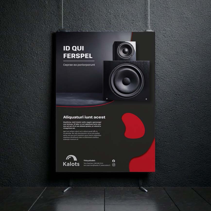 Tulevaisuudessa Kalotsin myymälämainokset voivat näyttää esimerkiksi tältä. Ilmettä sovelletaan tarpeen mukaan Kalotsin kaikkiin neljään väriin.